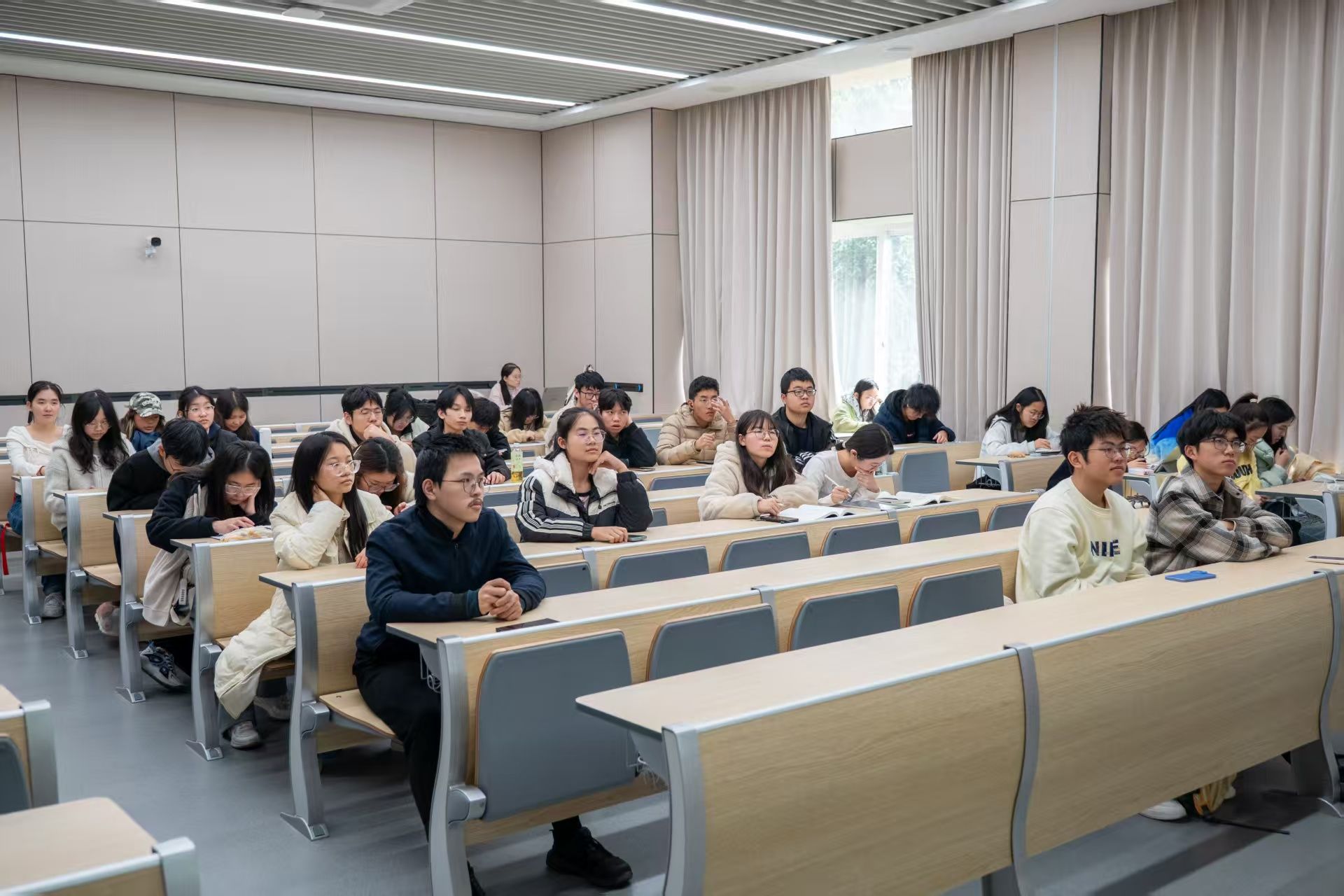 李果老师以其深厚的学识和丰富的实践经验,将同学们带入了一个瑰丽而深邃的漆艺世界。他从成都漆艺的起源讲起,历经汉唐的兴盛与辉煌,通过一幅幅历史图片和出土文物记载,清晰地勾勒出这项国家级非遗项目绵延数千年的生命脉络。李老师深入浅出地解析了成都漆艺繁复精妙的制作工艺。同学们在李老师的精彩讲解中领略到了漆器是如何在黑、红、金的主色调中,演绎出极致典雅与华贵的东方美学。同学们了解到制作漆器不仅是手工艺的传承,更是流淌在血脉中的文化基因与匠心精神的当代映照。